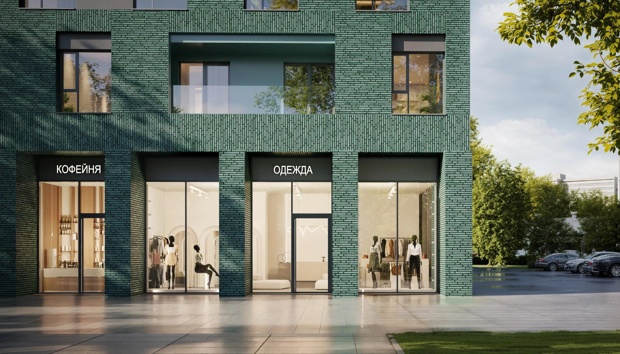 Помещения ритейла ориентированы на повседневный спрос жителей и сотрудников офисов и интегрированы в благоустроенную пешеходную среду комплекса. Формат ритейла легко адаптируется под задачи арендатора или собственника: от камерного бутика, кафе, аптеки или салона до формата «на вынос».