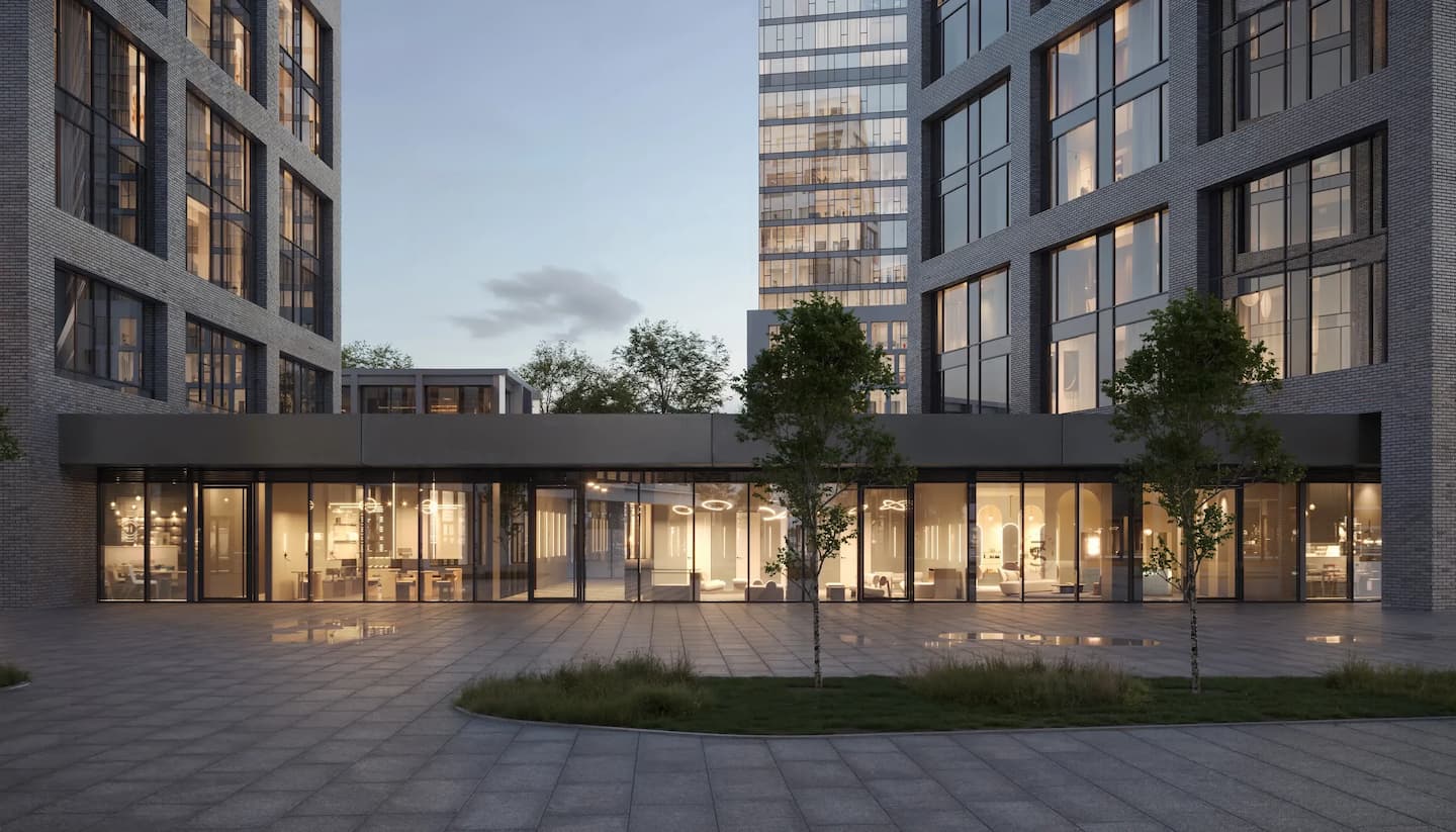 Площади от 26 до 172 м² позволяют разместить кофейню, пекарню, салон, отделение банка, аптеку, шоурум или сервисную точку. Все помещения — с витринным остеклением, свободным входом, возможностью разместить вывеску и высотой потолков до 5,2 м.