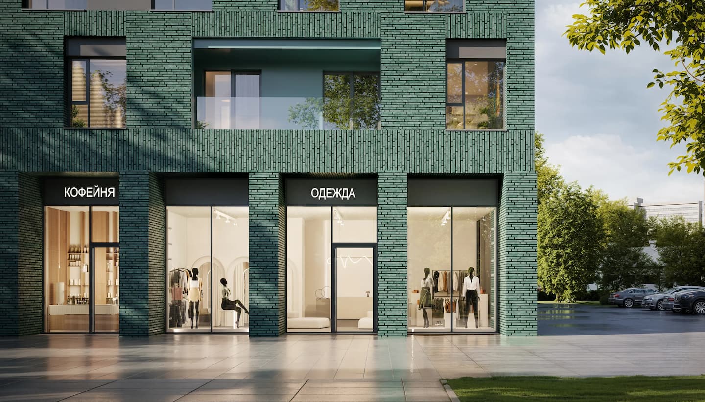 Помещения ритейла ориентированы на повседневный спрос жителей и сотрудников офисов и интегрированы в благоустроенную пешеходную среду комплекса. Формат ритейла легко адаптируется под задачи арендатора или собственника: от камерного бутика, кафе, аптеки или салона до формата «to go».